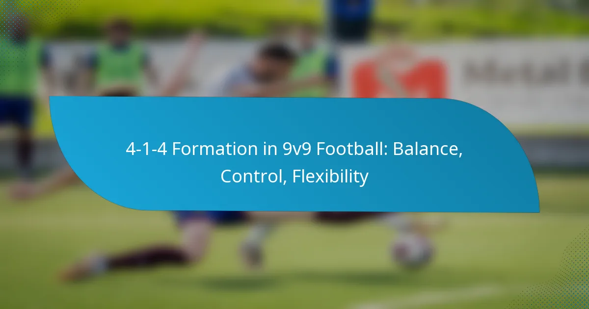 The 4-1-4 formation in 9v9 football is a tactical setup that emphasises balance, control, and flexibility. It consists of four defenders, one central midfielder, and four attacking players, allowing teams to maintain a solid defensive structure while providing ample support for offensive plays.